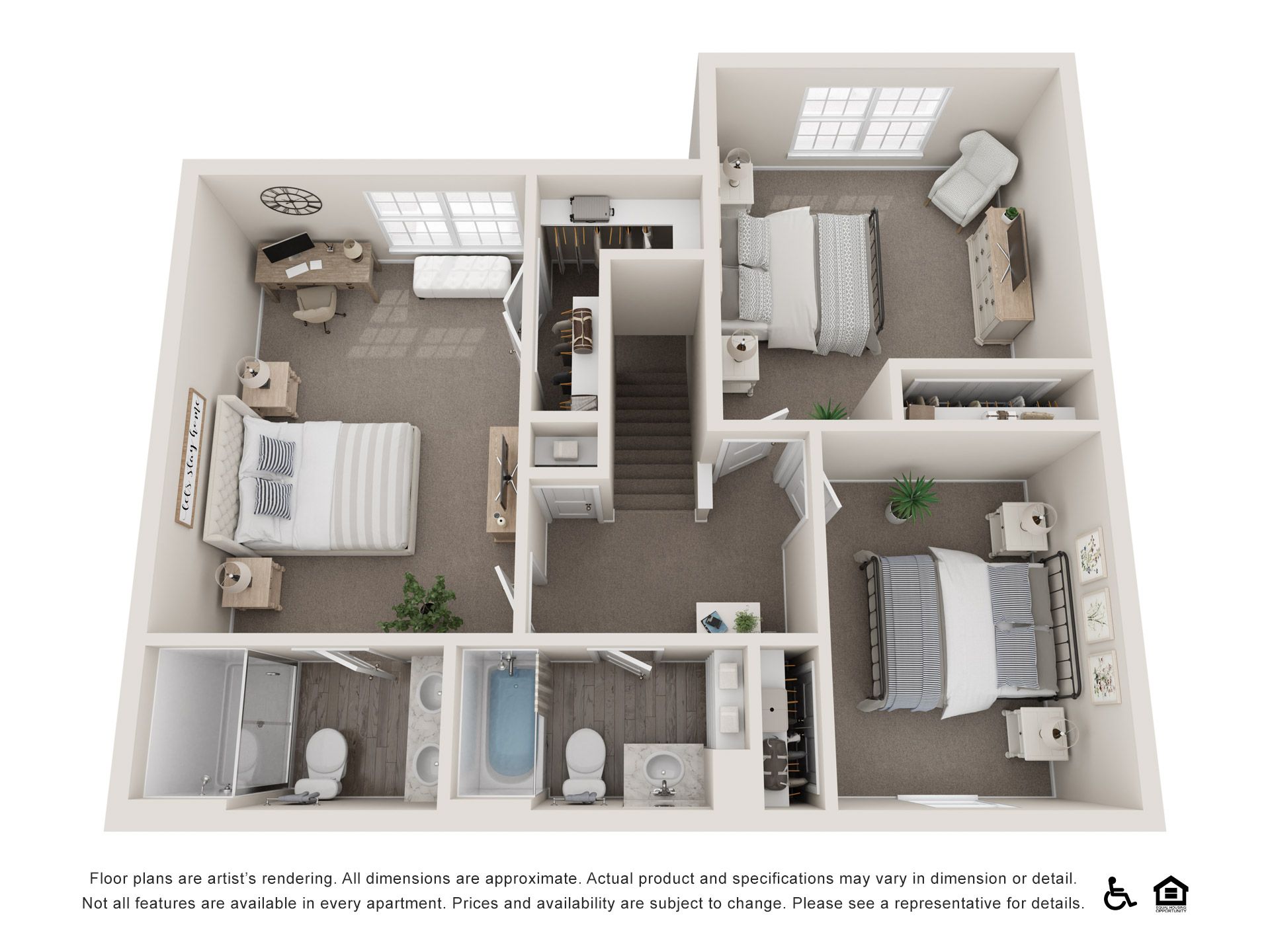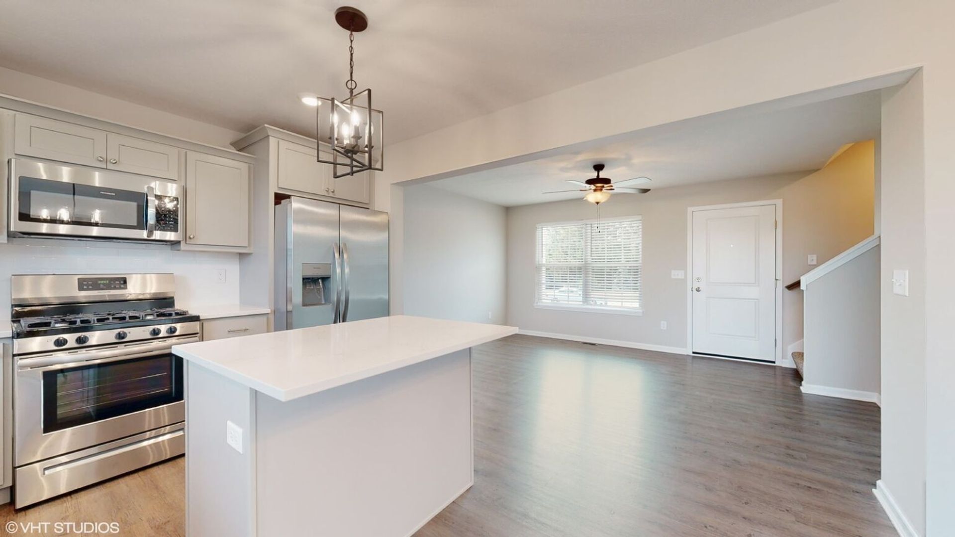 This three-bedroom, two-and-a-half-bathroom Timpview floorplans feature 1,508 sq. ft. This floorplan features a primary bedroom with a walk-in closet and ensuite. Cook a delicious meal in the eat-in kitchen with a stove, dishwasher, refrigerator, and microwave. Host guests in the open-concept living room, dining room, and kitchen. Enjoy the attached two-car garage, designated laundry room, porch, and patio.