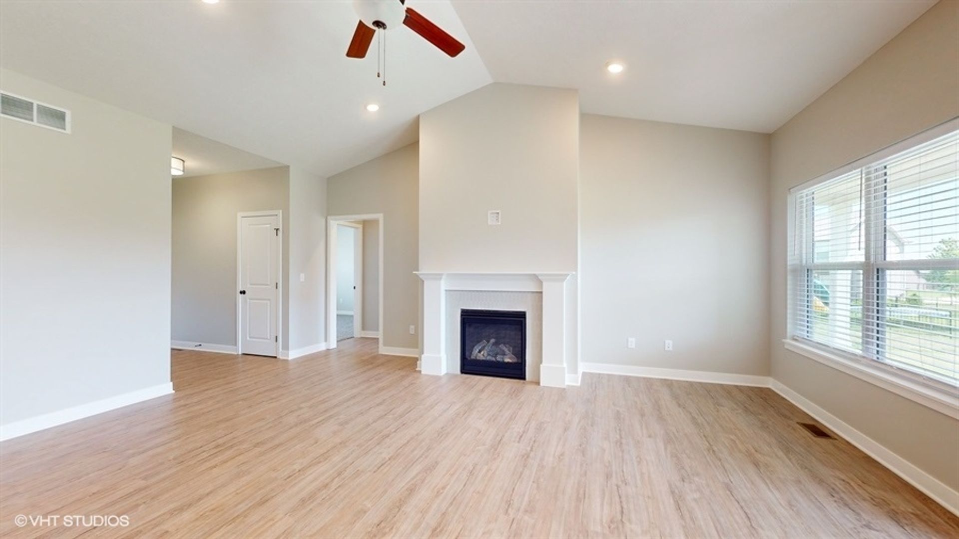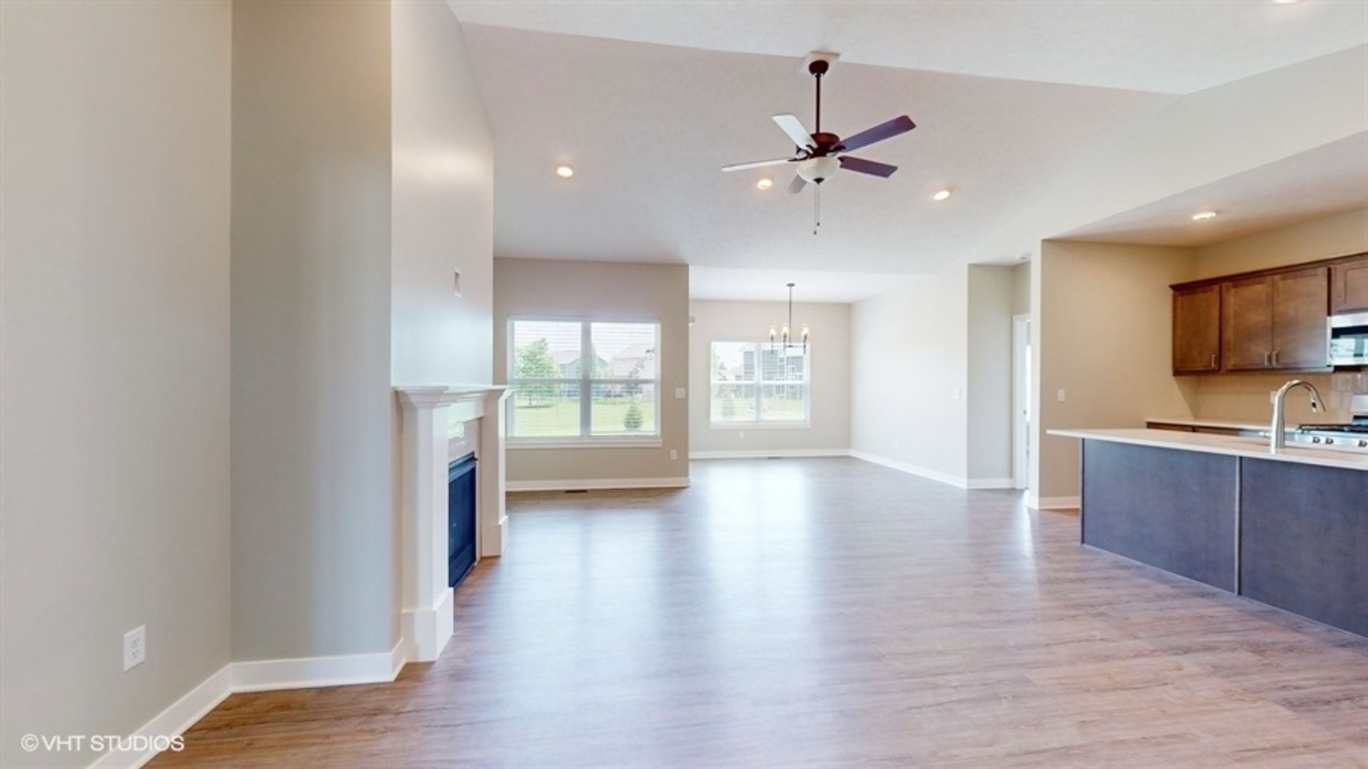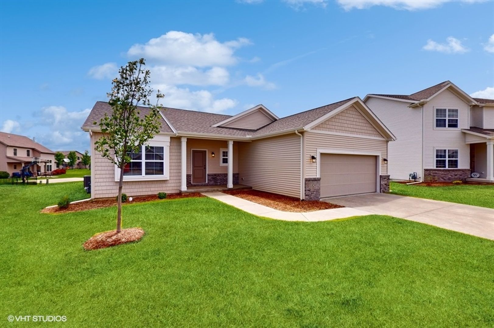 This brand-new, single-family home presents a thoughtfully designed layout, featuring three bedrooms on the main floor and an additional bedroom accompanied by a generously sized den in the basement. Enjoy the spaciousness of the 9-foot ceilings, relish the convenience of walk-in closets and a utility room, and plan to entertain in the open floor plan around the charming fireplace.