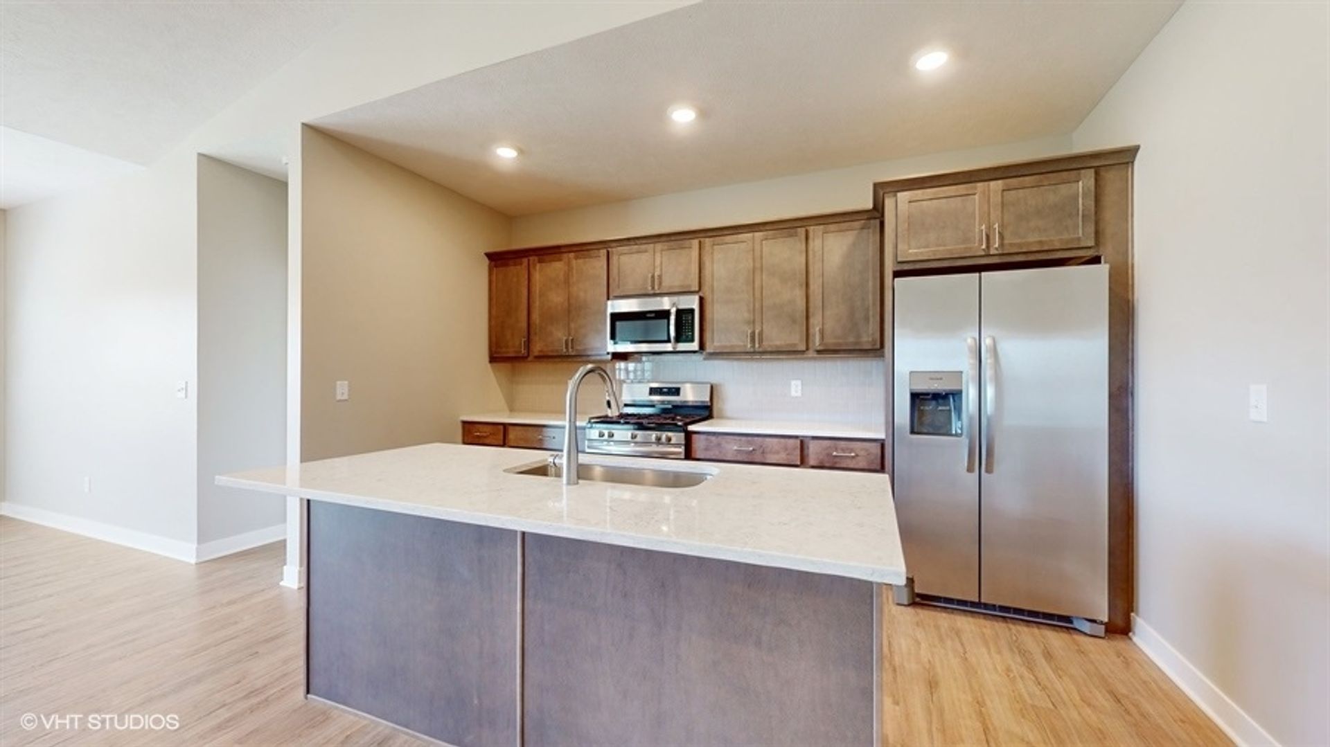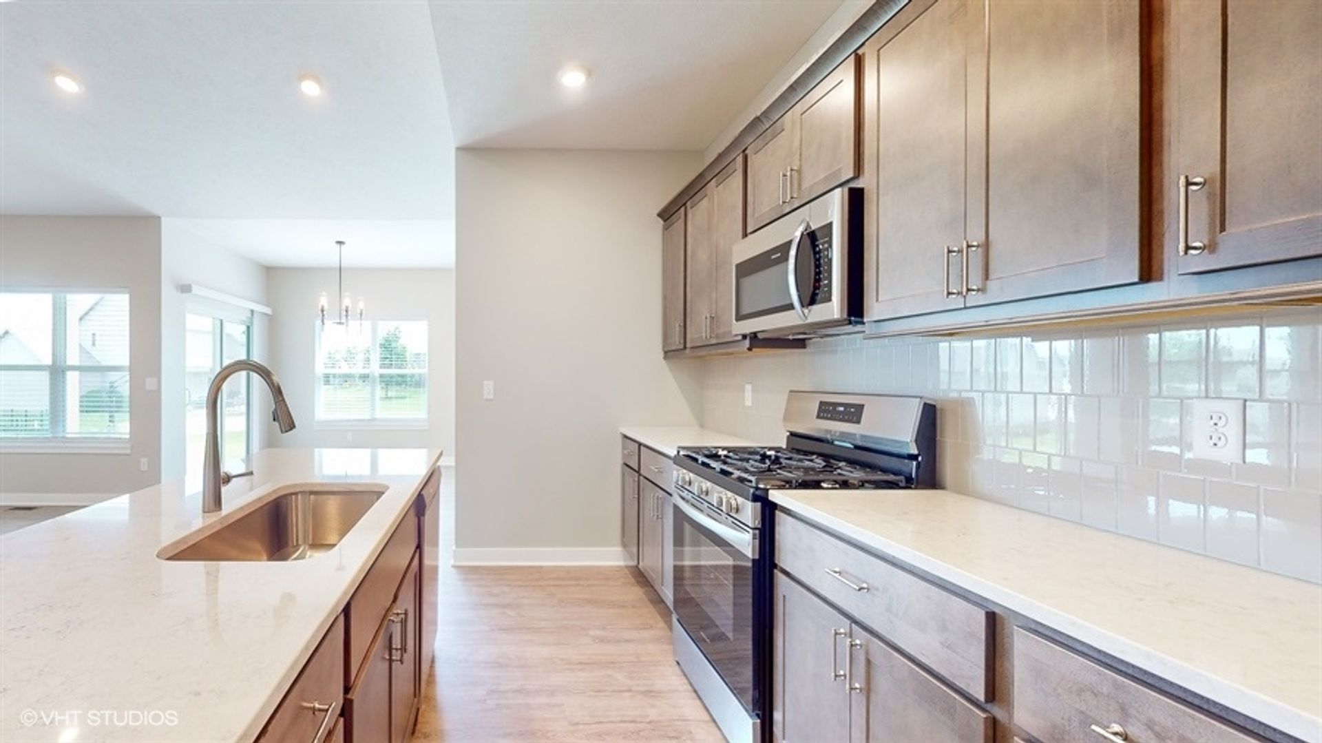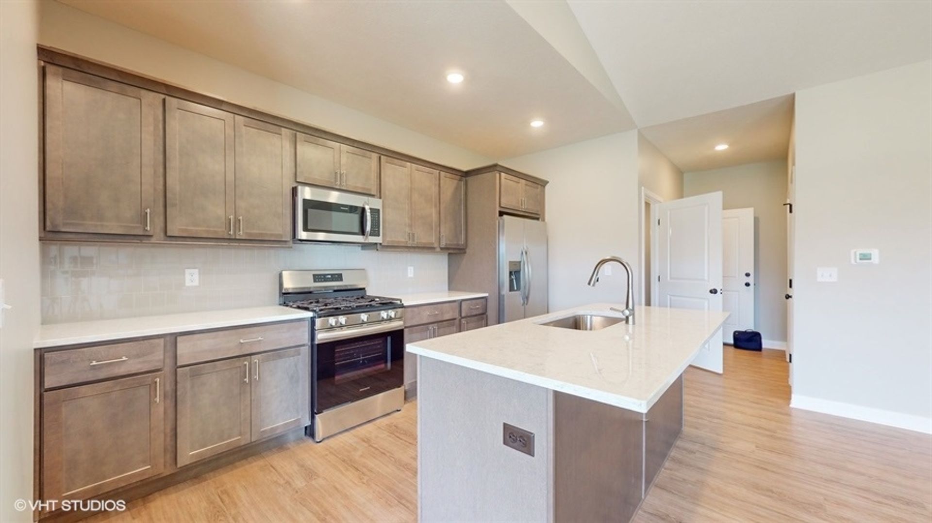 This brand-new, single-family home presents a thoughtfully designed layout, featuring three bedrooms on the main floor and an additional bedroom accompanied by a generously sized den in the basement. Enjoy the spaciousness of the 9-foot ceilings, relish the convenience of walk-in closets and a utility room, and plan to entertain in the open floor plan around the charming fireplace.